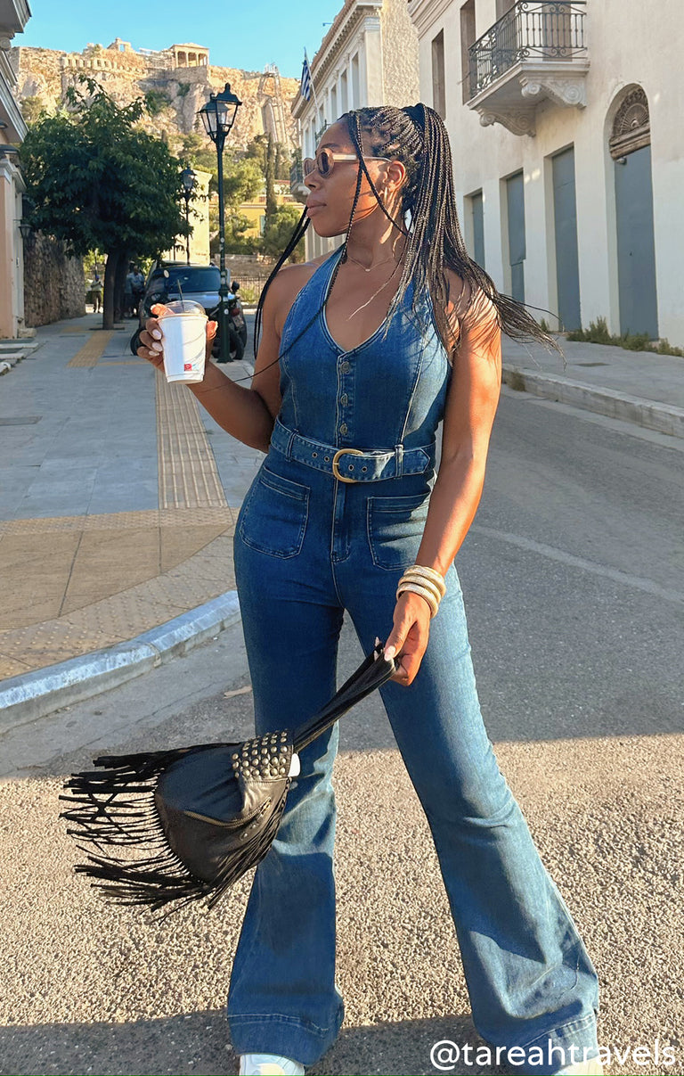 Yeehaw! The Fort Worth Jumpsuit is the perfect 70s inspired statement piece. Adorned with a thick belted waist, this denim will have you styled to perfection! Pair with boots and fun jewelry for your new fave fit.