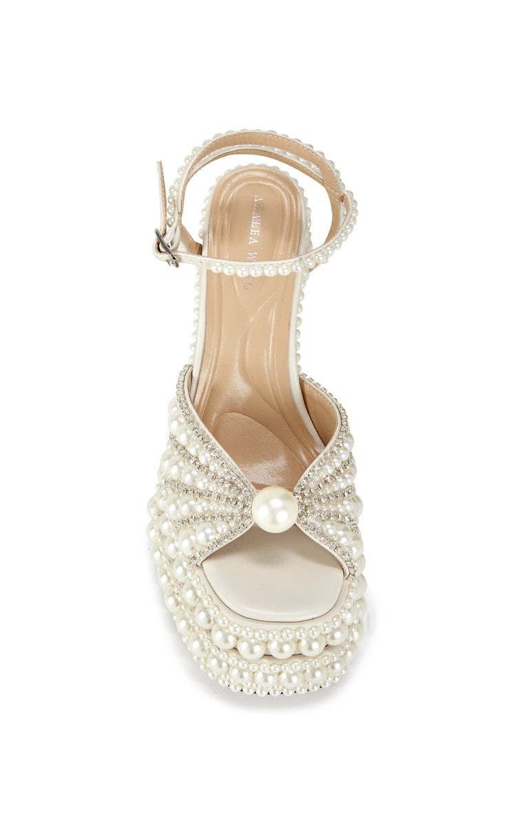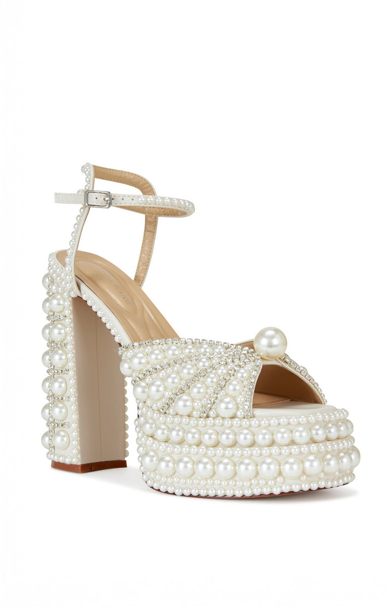 Step into luxury with the Astrella Heel! Faux pearls, rhinestones, and a platform heel bring the glam, while the open toe and adjustable ankle strap keep things comfy all day.