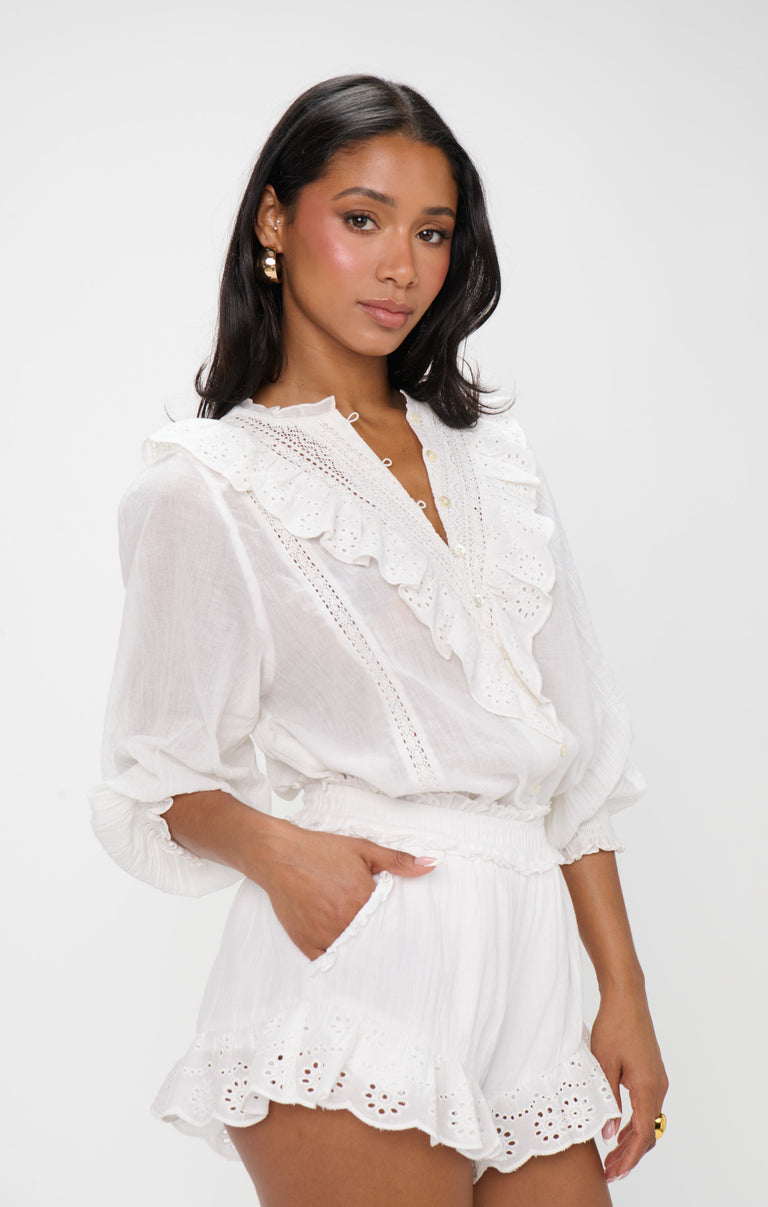 Inspired by vintage styles, these playful shorties are a warm-weather essential! Featuring an elastic waist for comfort and eyelet trim for a feminine finish, they’re perfect for any look. Pair with western boots for a laid-back touch or dress them up with ballet flats - these shorts are as versatile as they are cute!