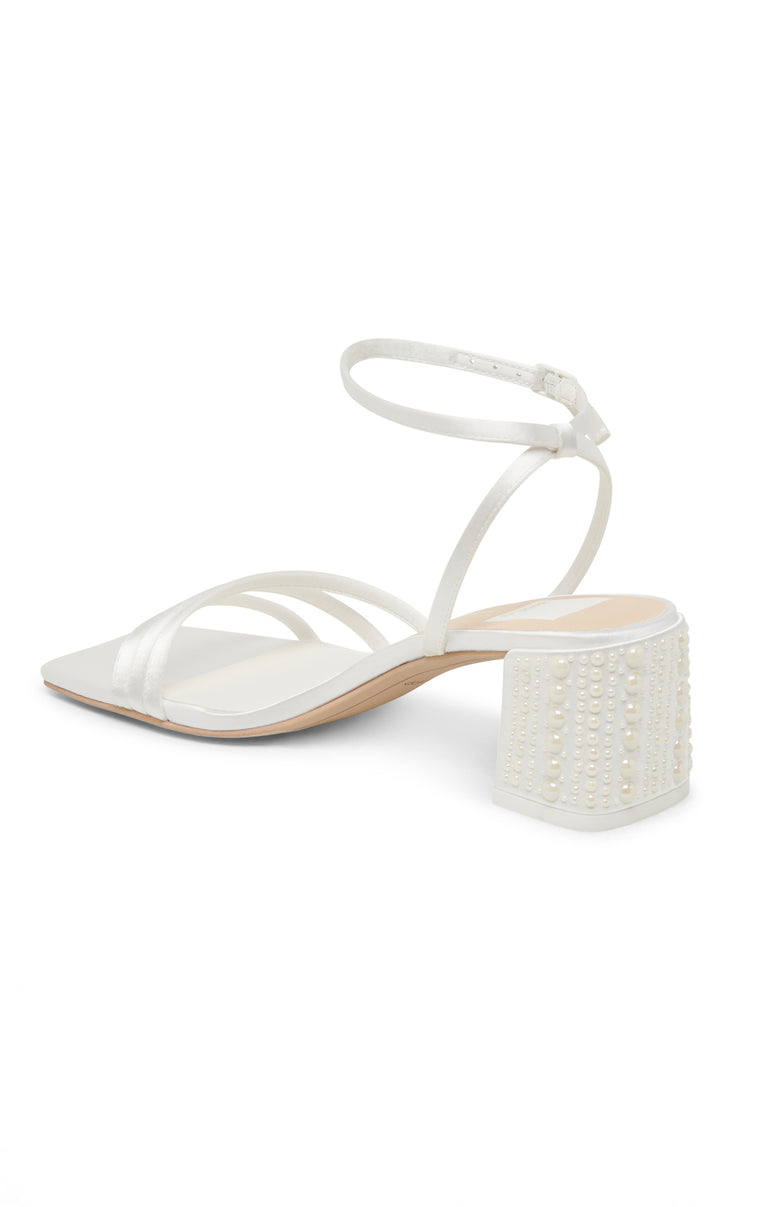 Be the best dressed with Dolce Vita's Ysabel Pearl Heel - a delicate ankle-strap silhouette with a low, walkable heel embellished with shimmery pearls for the ultimate event-ready touch.
