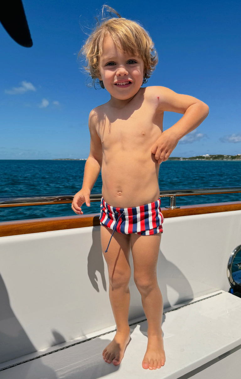 The cutest, patriotic striped Lil Dude shorts that will have your mini matching their mama!