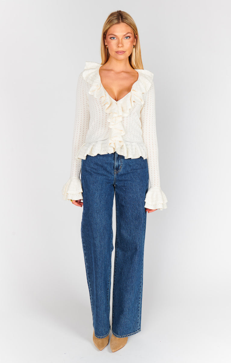 Cute, femme, and the right amount of flirty! This lightweight pointelle knit top features soft ruffle trims and a flattering V-neck for that easy, pretty feel. Pair it with the matching Marley Skort for a full look, or throw it on with denim when keeping it casual.