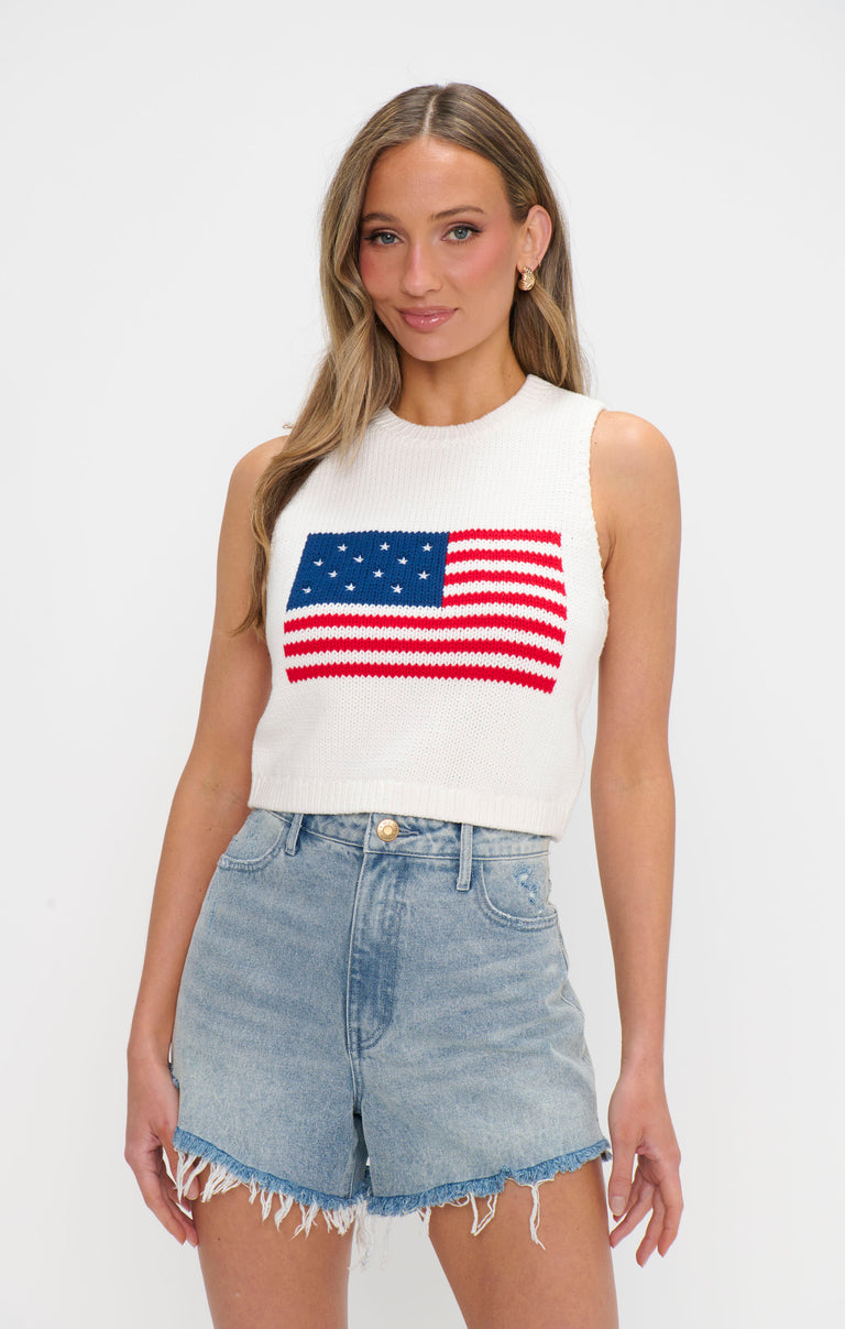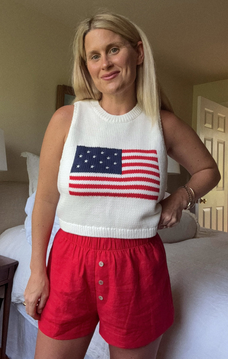 Show off your stars and stripes in this relaxed, ultra-cozy knit top. Perfect for laid-back days by the lake!