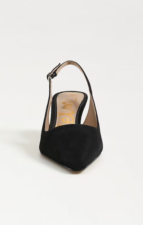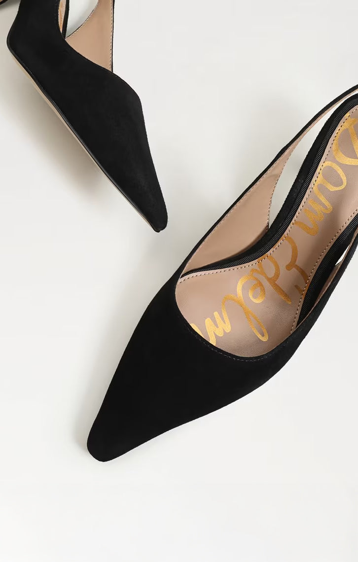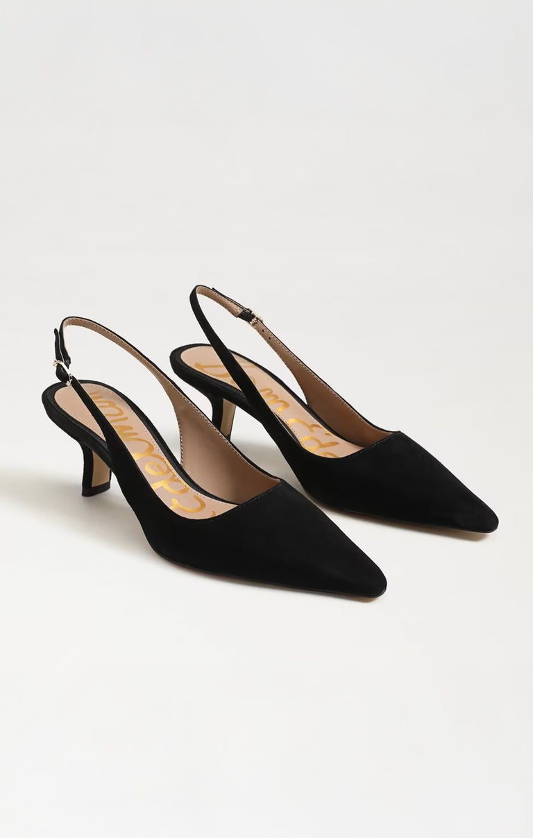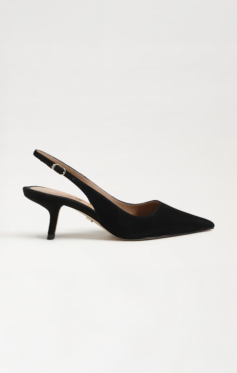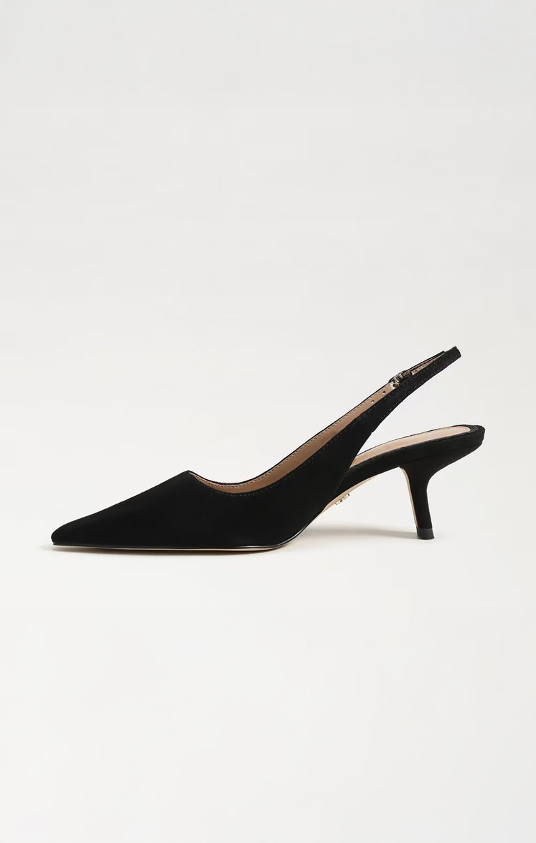 Step out in style with these pointy toe pumps featuring a sleek, minimalist design and an adjustable slingback strap for all day comfort.