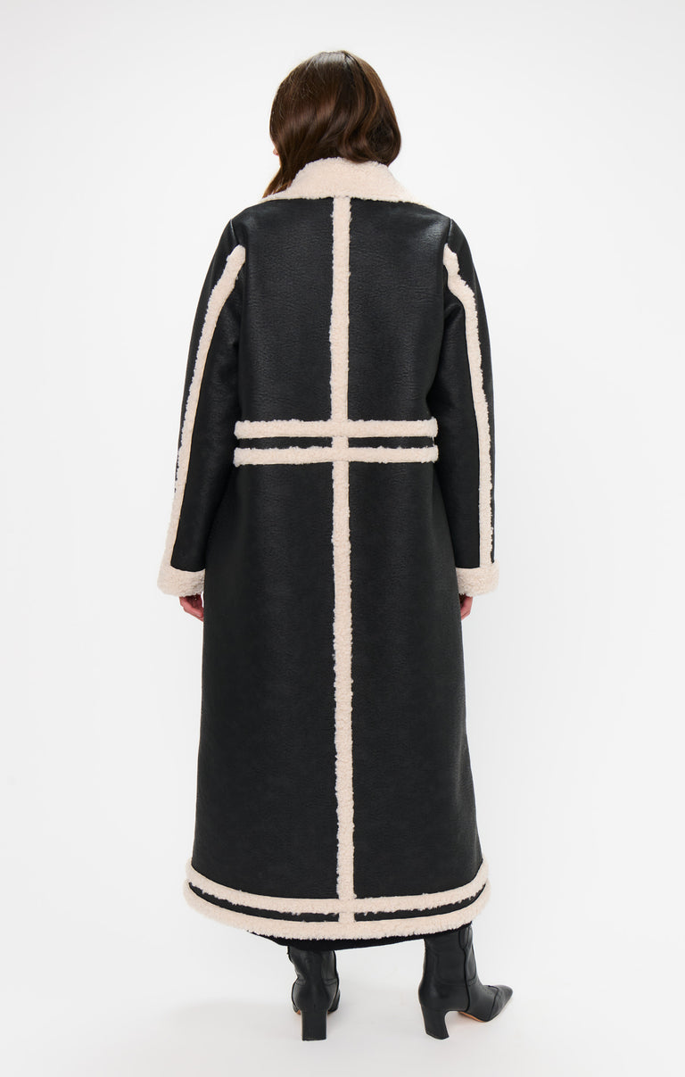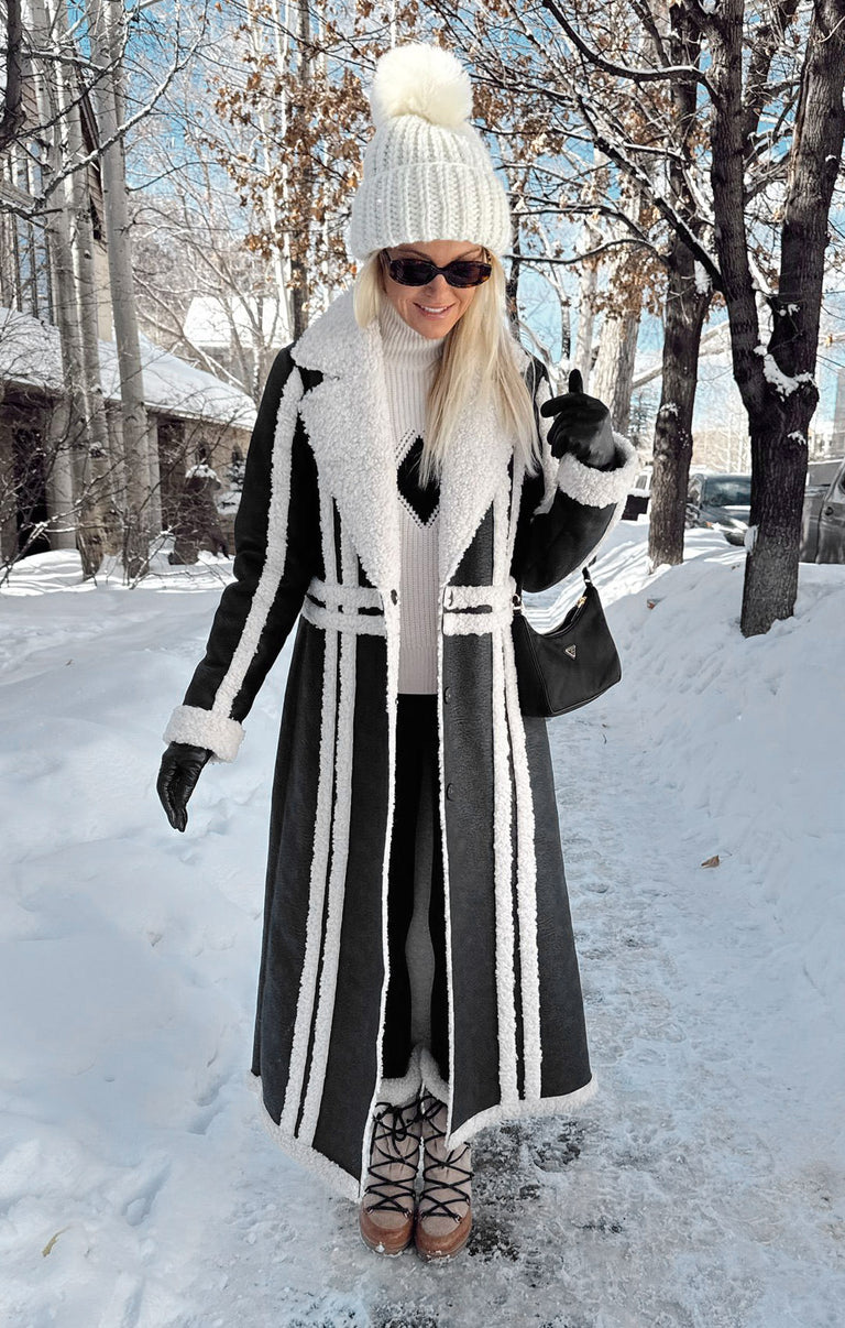 Make every chilly day your runway in the Swiss Alps Coat! Crafted from richly textured faux leather with ultra-plush sherpa trims, it’s the perfect mix of warmth and edge. With an easy, slightly oversized fit, front buttons, and side pockets, it’s your new go-to for winter days and city strolls.