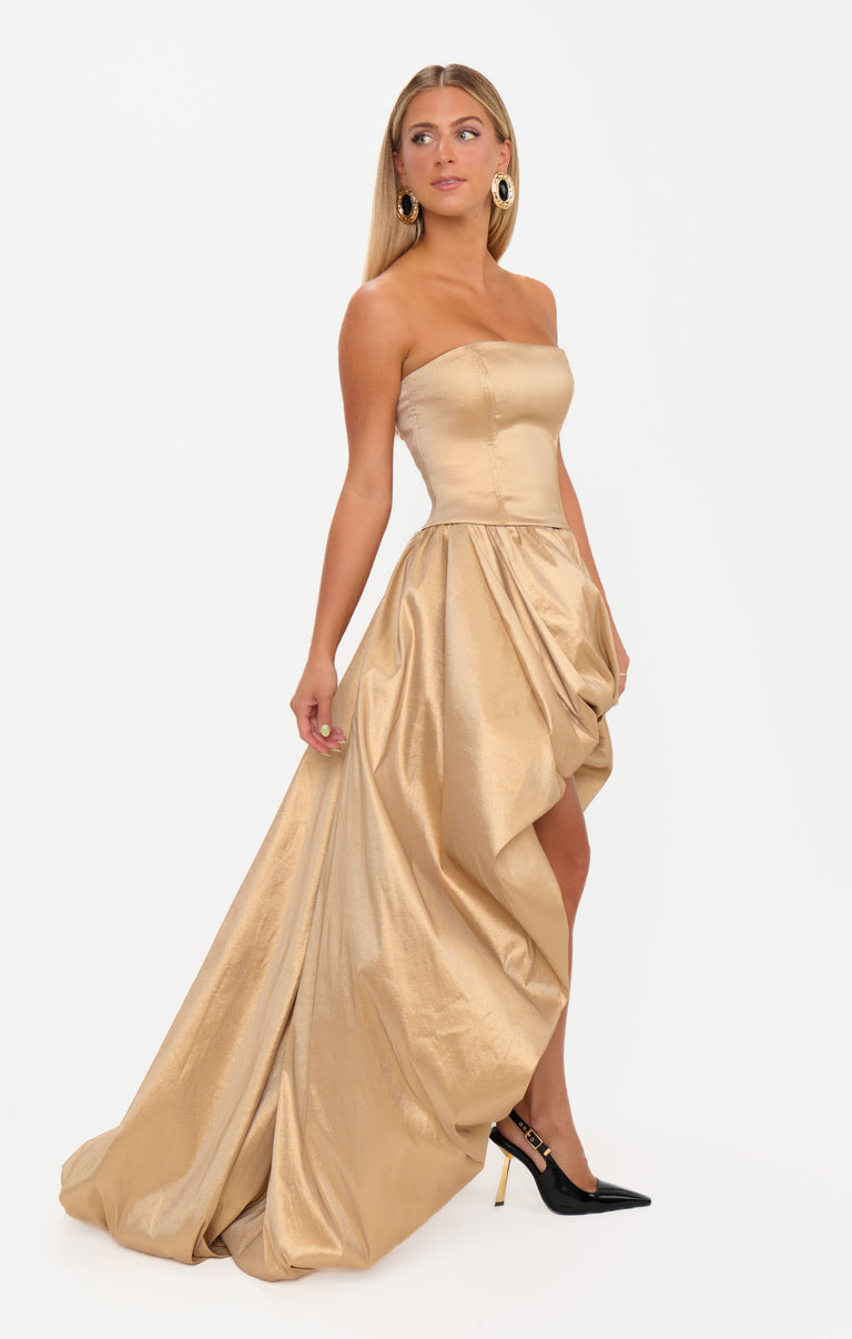 Black-tie wedding or Met Gala moment? The Tatum Maxi Skirt is ready for either! With a sculptural high-low bubble hem and rich taffeta fabric, she’s bold, dramatic, and totally unforgettable. Pair it with the matching Tatum Top and get ready for jaws to drop!