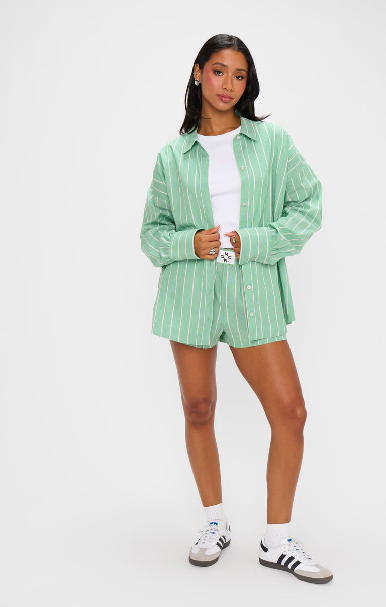The Tyler Button Down is where cute meets casual! Made from lightweight poplin, it’s breezy, effortless, and just the right amount of polished. Pair it with the matching shorts and white sneaks for an easy, everyday look you’ll love!